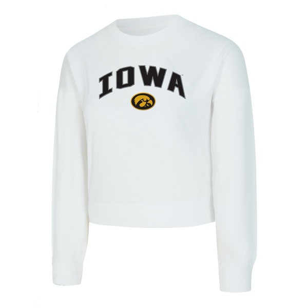 You'll love wearing the Iowa Hawkeyes Women's Laney Top on those laid back days! This white long sleeve top features IOWA arched over the classic Tigerhawk in an oval logo. Made by Concept One.